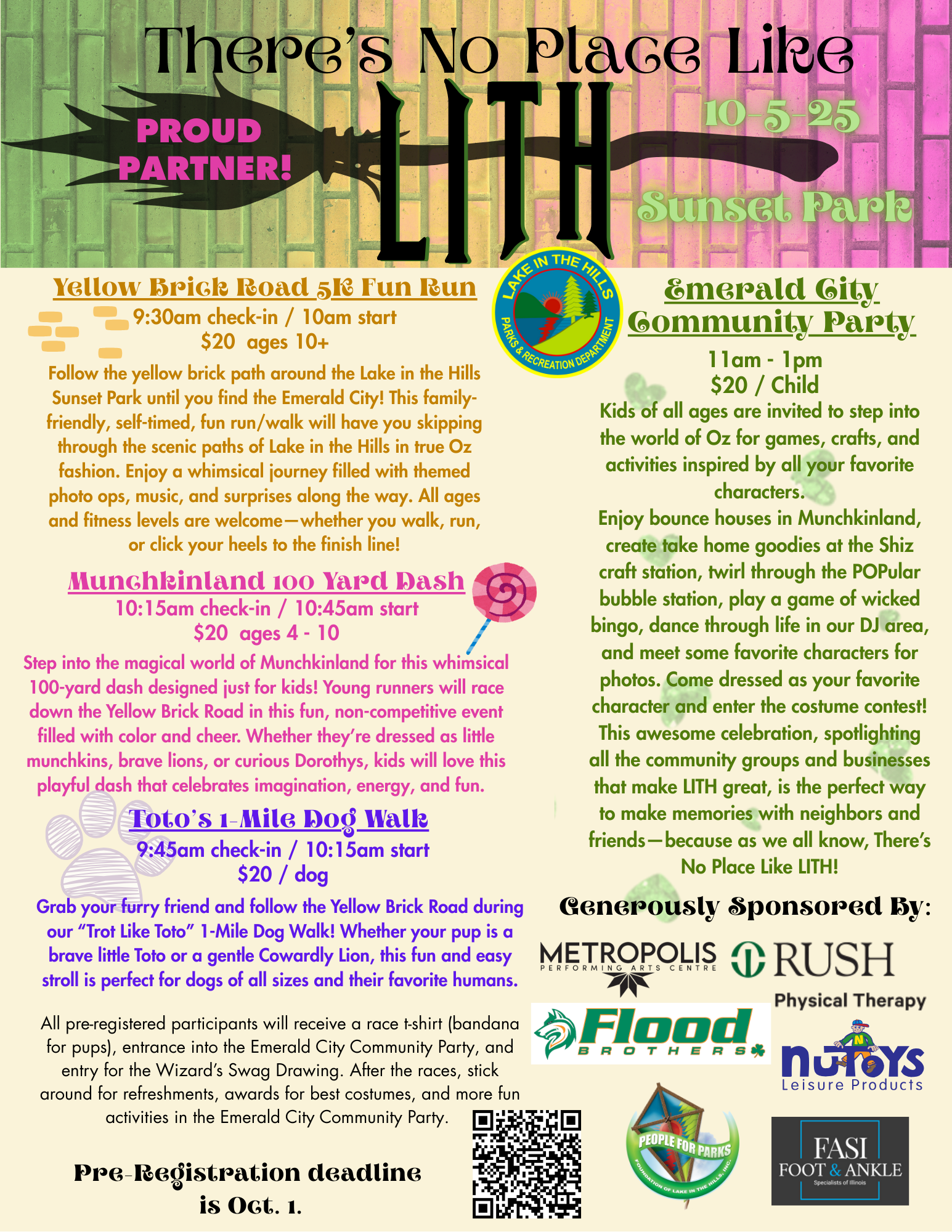 We’re excited to share that Foot and Ankle Specialists of Illinois is a proud partner of this year’s “There’s No Place Like LITH” celebration—a whimsical, Wizard of Oz–themed community event happening in Lake in the Hills on Saturday, October 5th.